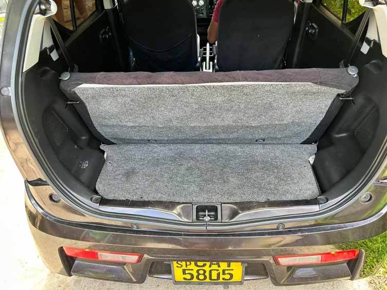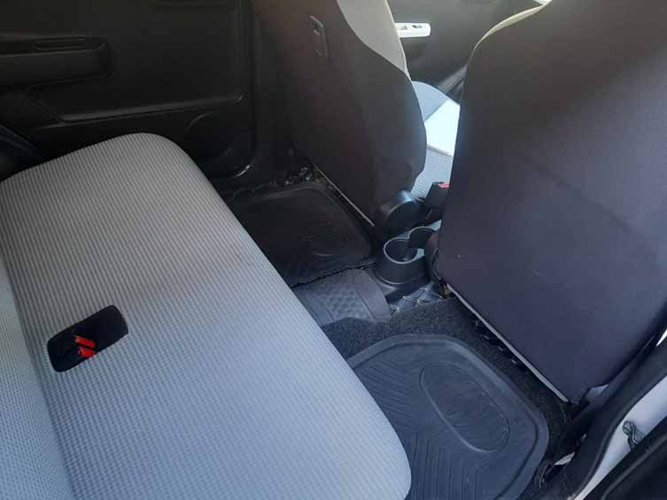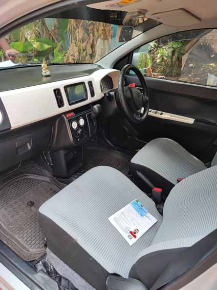 The driver’s seat in the Suzuki Alto offers basic comfort and is suitable for drivers up to 175 cm tall. All main controls and switches are easily accessible, making this car easy to drive. If you are unfamiliar with the local driving conditions in Sri Lanka, this rental car is a perfect choice for easy and comfortable driving. The audio system supports Bluetooth, though the sound quality is mediocre. Like most kei cars, the sound insulation is weak, but it’s still a practical and budget-friendly option for those looking to rent a car in Sri Lanka.